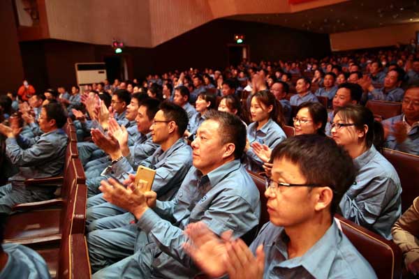 公司黨委書記、董事長張衛(wèi)民首先代表公司黨委向辛勤奮戰(zhàn)在各條戰(zhàn)線的干部職工致以崇高的敬意!在演出致辭中,他說,在堿業(yè)公司三十年的發(fā)展歷程中,全體職工與企業(yè)同呼吸、共命運(yùn),踏著《咱們工人有力量》的鏗鏘旋律,在改革、創(chuàng)新、發(fā)展的實(shí)踐中,在各自的工作崗位上斗志昂揚(yáng)、忘我工作。近日,公司被評為全市國資系統(tǒng)“先進(jìn)集體”稱號;“公司劃轉(zhuǎn)地方以來利潤首次突破8000萬元”被評為“2017年度國有企業(yè)最具影響力十佳事項(xiàng)”,經(jīng)營指標(biāo)同比大幅增長……每一項(xiàng)業(yè)績,每一次進(jìn)步,每一次成長,無不凝結(jié)著大家的勤勞與智慧、心血與汗水。