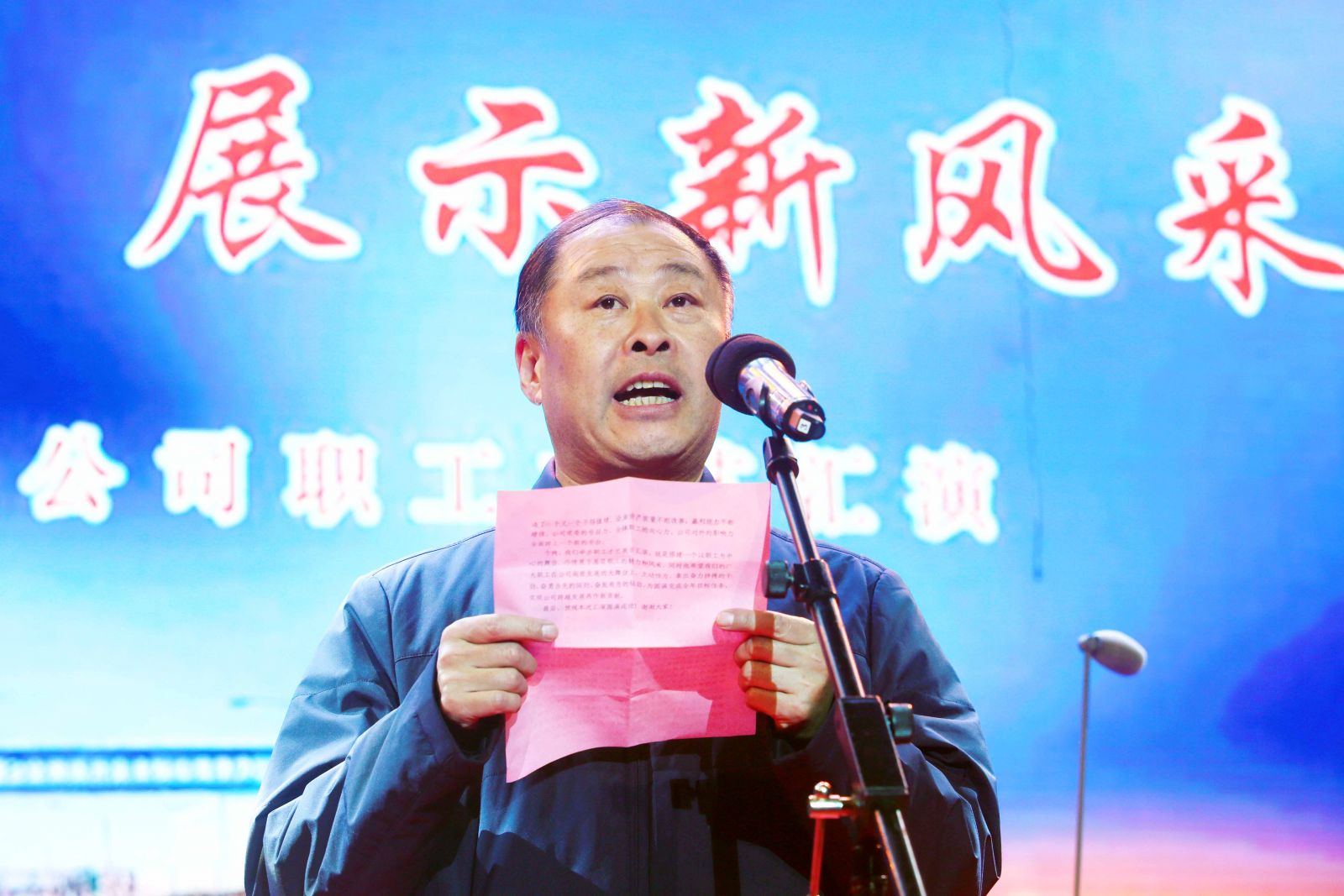 據(jù)悉,為了烘托氣氛,凝聚力量,文藝匯演開(kāi)始前,公司22個(gè)分會(huì)主要負(fù)責(zé)人以宣傳圖版的形式,向公司領(lǐng)導(dǎo)及觀看演出的職工和家屬逐一介紹各自2018年的工作亮點(diǎn)工作和先進(jìn)人物事跡。