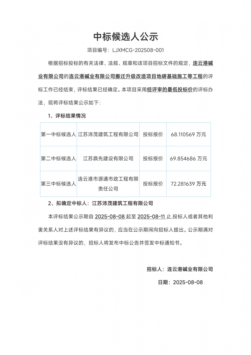 搬遷升級改造項目地磅基礎(chǔ)施工等工程中標(biāo)候選人公示